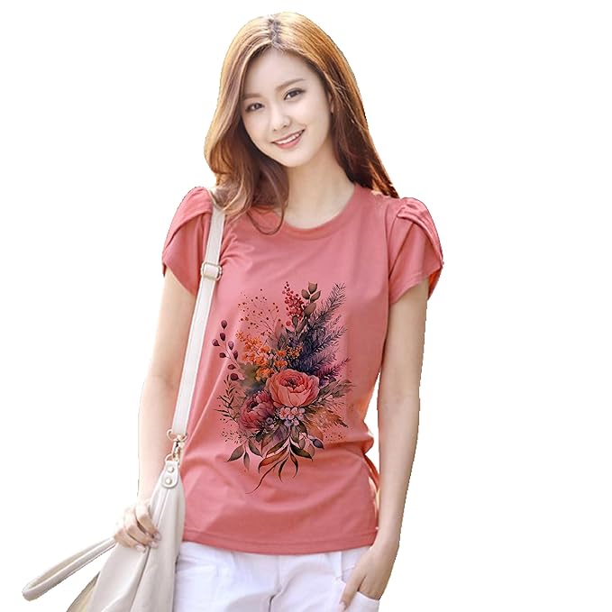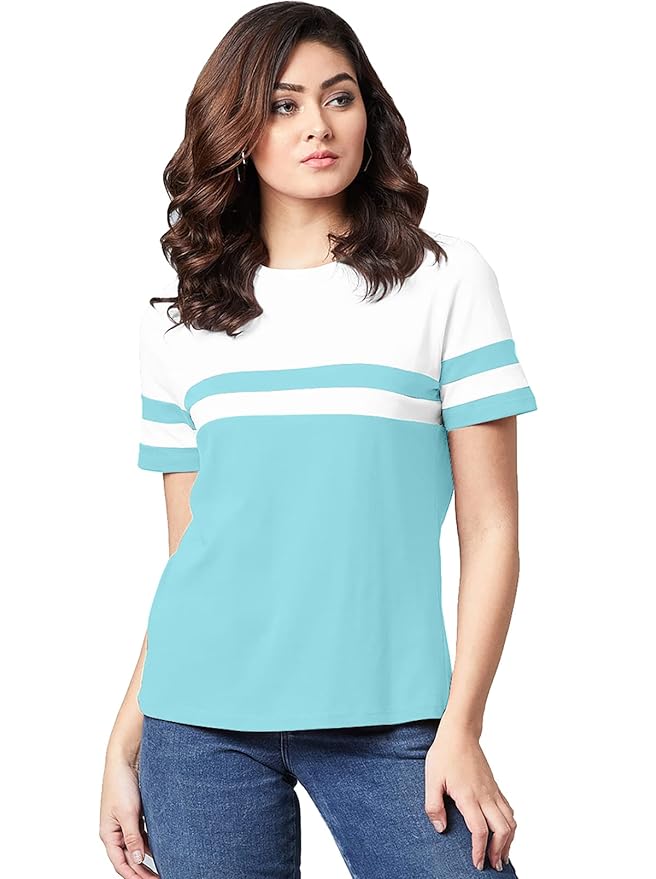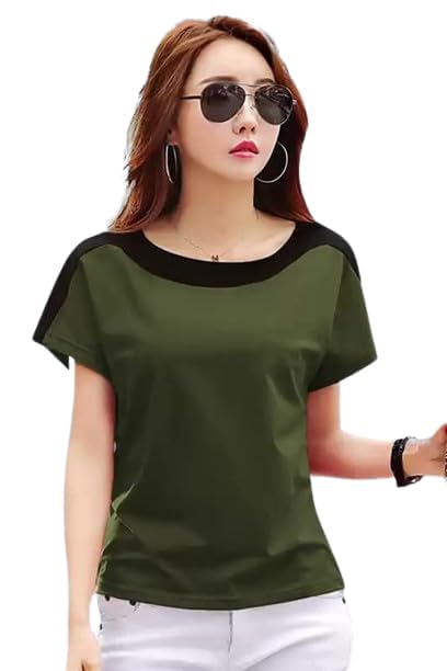 TRUE BASKET Round Neck Simple Cotton T-Shirt for Girls, Designer Half Sleeve Cotton T-Shirt for Women's, Regular Fit Solid T-Shirt for Girls for Casual, Office (Pack of 1)