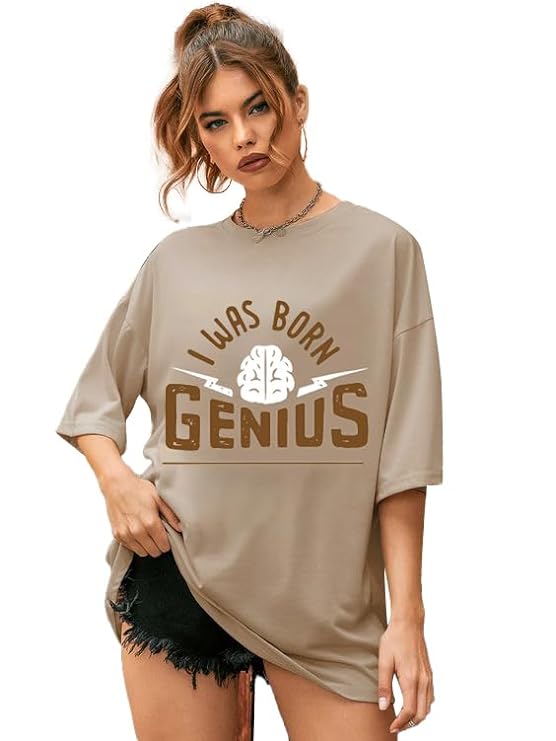 TOGS & TERRE Cotton Stylish Brown Oversize Printed Casual Tshirt for Women, Brown