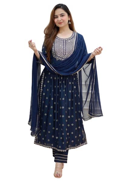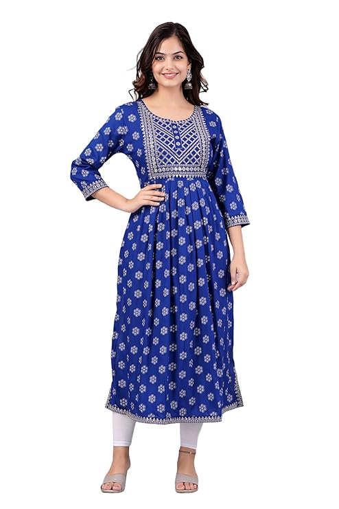 NEW4U Women's Sequin Zari Embroidery Printed Naira Cut Kurti